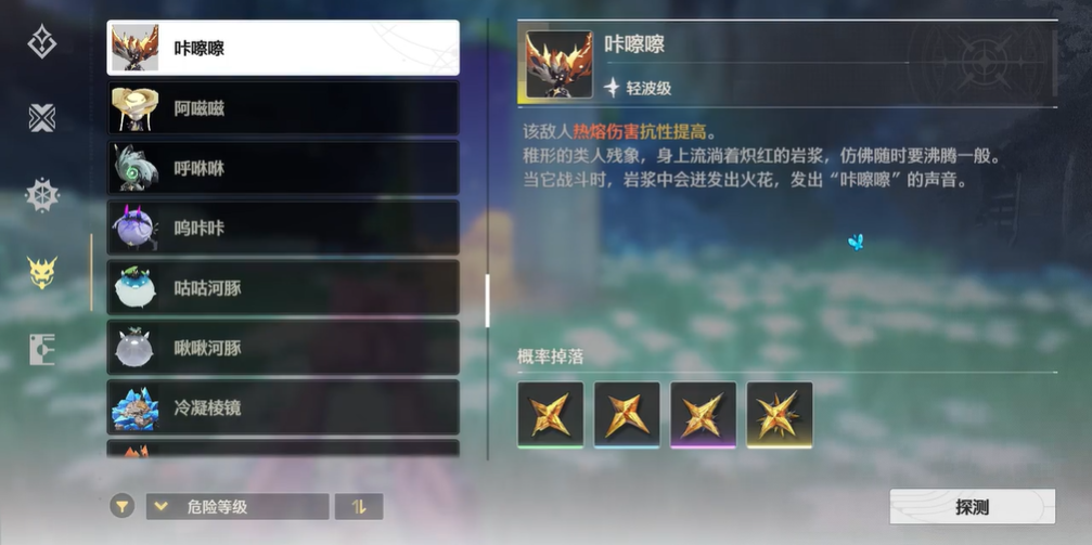 名为咔嚓嚓的敌人,其核心威胁在于其使用声骸技能进行中远距离的火球投掷攻击,这种攻击会造成纯粹的热熔属性伤害。应对它的首要策略是明确其攻击模式为远程法系类型,并在战斗中保持高度的注意力来规避其弹道。由于火球弹道相对清晰,为玩家的闪避操作提供了明确的反应窗口,通过常规的移动和冲刺即可有效躲开,避免不必要的伤害,形成稳定的战斗开局。