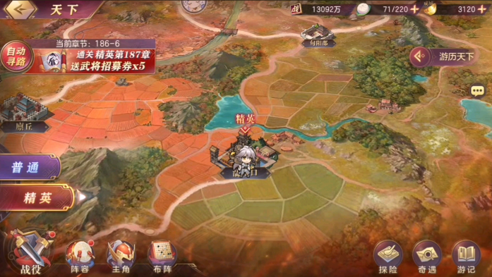 刚进入游戏时,咱们可以先专注于推主线副本和黄天秘境,尽快解锁演武堂并冲击排名,排名越高获得的元宝奖励越多。演武商店的碎片也能兑换缺少的武将,帮助咱们更快组建阵容。前期元宝尽量攒着,等到新手集市开启时再集中使用,能拿到更划算的资源。武将培养方