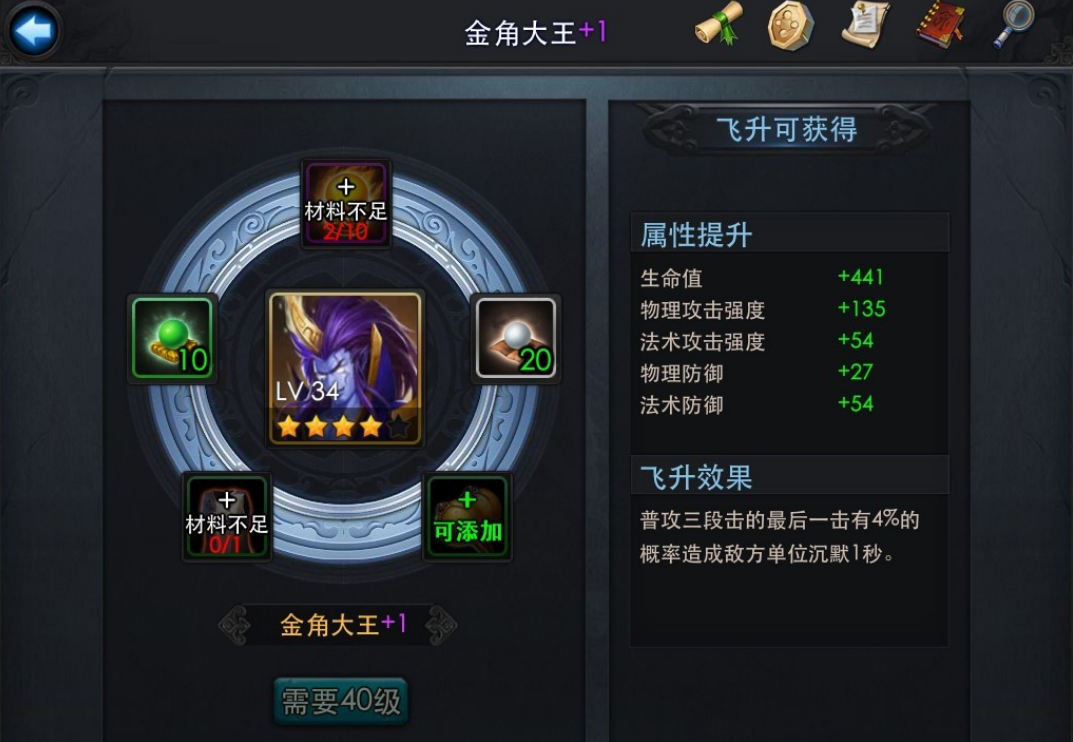 解锁内丹系统后,记得根据战斗场景灵活调整加点策略。金角的专属天赋如飞霞断虹能降低敌人双防,配合高暴击装备可最大化输出。在后期资源充足时,可以考虑均衡发展红色内丹的物攻和暴击属性,同时用蓝色内丹补充生存能力,比如少量点数分配给生命值或抗性,避免被敌方集火秒杀。内丹升级需要消耗英魂碎片,建议优先集中资源培养主力英雄。