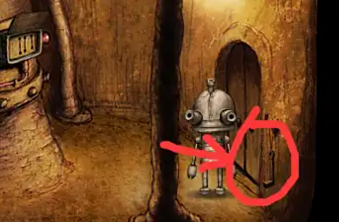 进入第四关后会看到一个胖子机器人偷吃煤炭后从右侧管道溜走。这时候别急着追,先往右下方走,在锁着的门旁边墙上挂着一把钥匙,记得把它收好。接着回到场景中间的锅炉附近,那里有个不停闪烁的小红灯,点一下它,右边的控制盒就会亮起来。