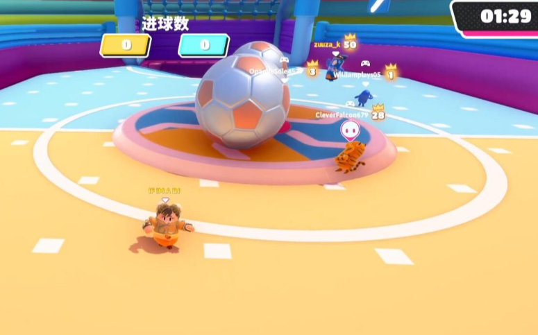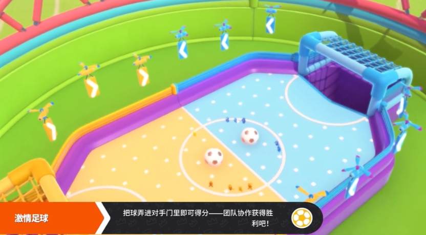 足球模式的核心规则是将球踢入对方球门得分,比赛结束时分数更高的一方晋级。该模式通常分为两队对抗,场上可能出现多个足球或特殊球类(如橄榄球),不同球的分值可能不同。玩家需通过跳跃、飞扑等动作触球,球的运动轨迹受物理引擎影响,因此需要掌握正确的发力方式。