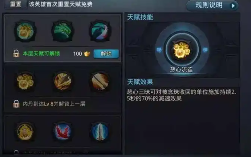 在技能搭配上,记得优先把一技能慈心三昧放在预设顺序的第一位,这个技能不仅能眩晕敌人,还能把周围的对手聚拢到一起,配合队友输出非常给力。二技能弥勒净土可以克制回复型肉盾,让对手无法回血,放在金伞后面释放效果更好。大招南无弥勒则是持续伤害加吸血的神技,建议最后开,这样能保证你在残血时依然有翻盘的机会。