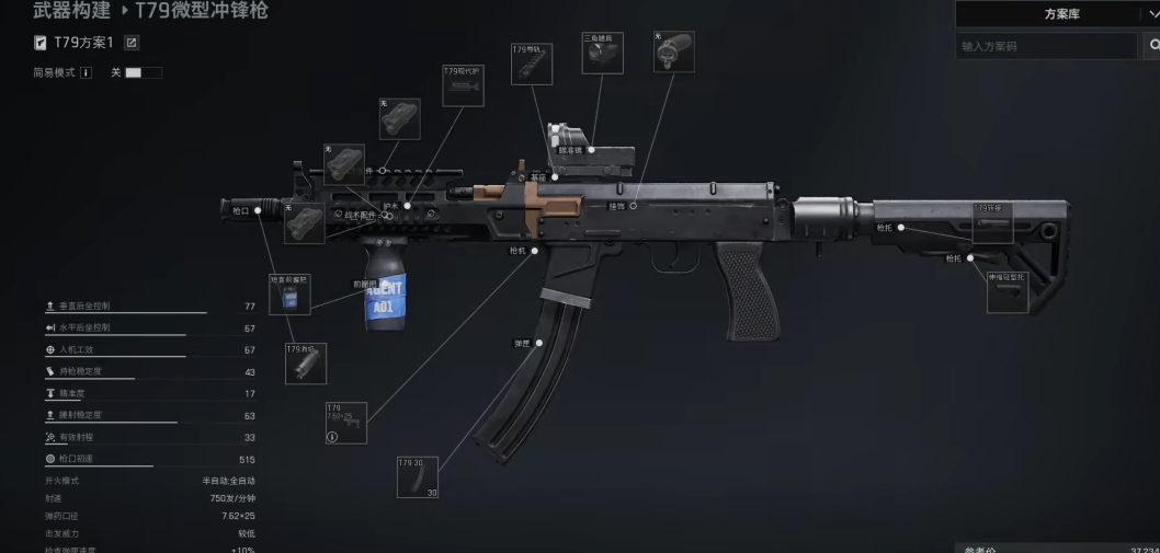 T79的弹药类型为9x19mm口径冲锋枪子弹,但可选弹种整体穿甲能力偏弱,最高级Pst弹穿透值仅为22,难以应对高等级护甲目标。选择LRN子弹的核心逻辑在于扬长避短——利用武器射速优势压制敌人,通过持续射击腿部积累伤害。这种策略在近距离遭遇战中效果显著,尤其针对未穿戴腿部护具的对手。若玩家希望进一步优化性能,可搭配30发弹匣提升续航,但需注意弹匣容量与背包空间的平衡。