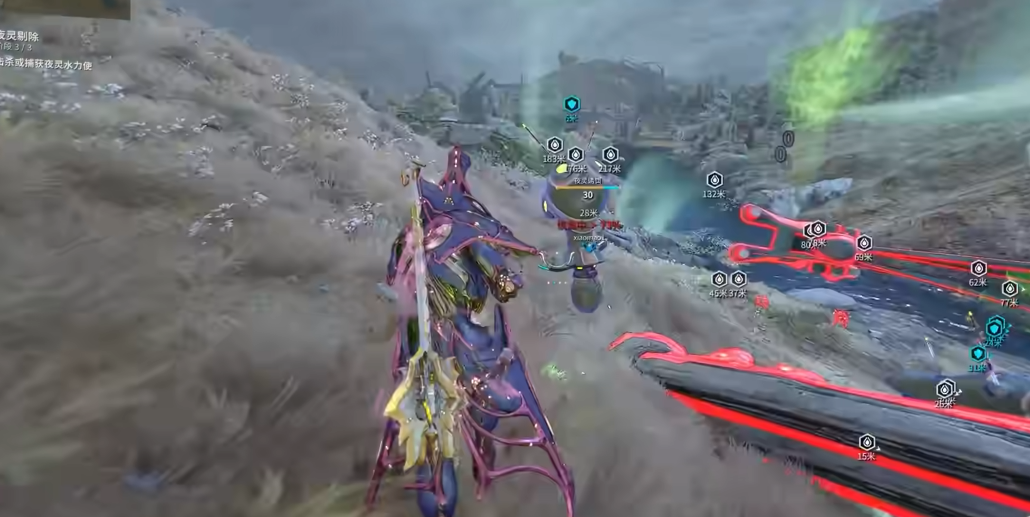 寻找兆力使时,建议优先前往地图中央的湖泊区域,其出水点较为固定。巨力使和水力使的刷新位置则分散在平原各处,但多集中在西南方向的废弃营地或东北角的山谷附近。部分玩家会利用指挥官模式按住C键发出声音吸引三傻注意,但实际效果有限,更推荐通过视觉追踪。若组队行动,可由一名成员驾驶Archwing快速扫描全图并标记位置,其余成员负责准备诱饵或增幅器。