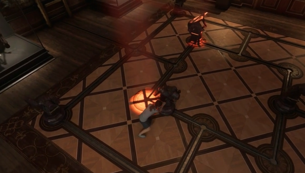 该段剧情在叙事层面埋设了劳拉与父亲关系的伏笔,书房内散落的文献资料与后续主线存在呼应。解谜过程中出现的天球仪、骑士棋子等道具,均与游戏核心的玛雅文明主题形成文化对比。技术实现上,光线追踪技术在此处得到重点运用,棋盘区域的光影反射效果直接影响解谜进度判断,这种设计提升了环境交互的真实性。