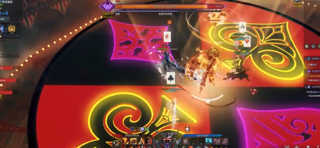 第三阶段是库克与赛顿的合体形态,这是整个副本最难的部分。战斗会在一个巨大的桌子上进行,BOSS会利用纸牌隐藏身形并配合玩具锤发动强力攻击。这个阶段需要玩家具备优秀的空间感知能力,及时判断BOSS出现的位置。当BOSS释放全屏技能时,团队必须迅速找到安全区域躲避,任何失误都可能导致前功尽弃。