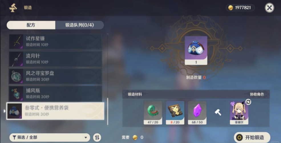 便携式营养袋的获取流程分为三个步骤:首先需要将蒙德地区的声望等级提升至5级,系统会自动发放锻造图纸;其次收集20个蜥蜴尾巴、20个混沌回路和50个电气水晶作为锻造材料;最后前往蒙德城铁匠铺进行锻造,制作耗时30秒且永久生效。该道具每个账号仅能制作一个,但可无限次使用且不消耗耐久度,属于高性价比的常驻型功能道具。