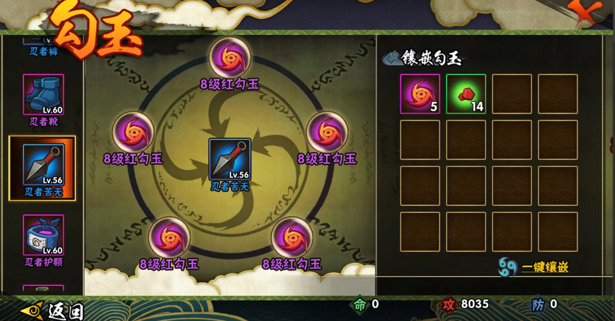 装备的进阶等级划分较为严格,每件装备的进阶节点固定,比如武器在10级、20级等整数等级时可进阶,护额则在13级、23级等节点。勾玉系统与装备紧密相关,勾玉等级越高,需要的经验值越多,1级勾玉需10点经验,2级需30点,以此类推。合理分配勾玉和宝石资源,能最大化装备的收益。对于新手来说,前期可以优先提升基础战力,比如天赋和秘境卷数量,后期再逐步优化饰品和忍具的搭配。