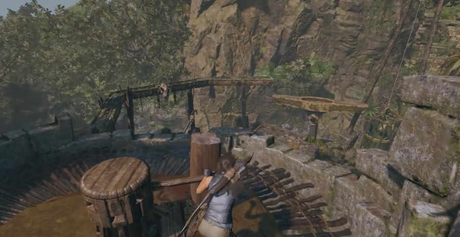完成上述步骤后,需快速通过临时搭建的绳索桥。桥体稳定性有限,建议保持匀速移动避免晃动。若中途坠落,需从水塔重启流程。抵达对岸后,可继续探索丛林遗迹区域。该谜题核心在于把握水流控制与绳索连接的时机,建议提前观察绳桩位置以减少操作失误。