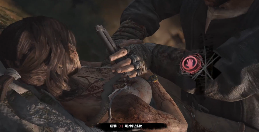 劳拉被俄国人抓住的桥段是游戏早期的关键剧情,需要通过快速反应事件(QTE)完成逃脱。当屏幕提示出现白色圆圈缩小至红色区域时,需迅速按两次F键,随后连续狂按E键,最后用手枪射击俄国人任意部位即可结束战斗。这一过程要求玩家准确把握按键时机,过早或过晚都会导致失败。