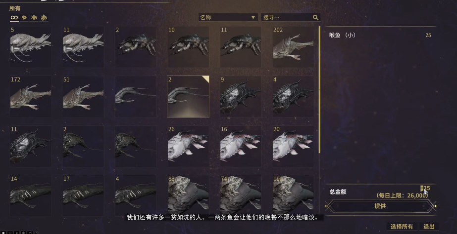 鱼类兑换需要先在渔夫处购买鱼叉和鱼饵,不同水域能钓到特定品种。推荐优先兑换夜灵鱼饵,这类鱼分解后能获得高价值部件。矿石则需要用切割器在平原矿脉采集,完美切割能获得额外奖励。生物标本要用麻醉步枪捕获,注意别伤害动物否则会影响兑换价值。
