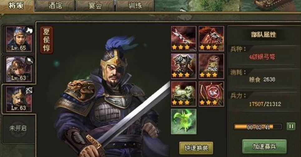 推荐使用夏侯惇、甘宁、马超等武将形成互补。夏侯惇首排不放战法,用于消耗敌方第一将并承受第二将的战法;甘宁需保留残兵抵挡后续攻击,战法释放时机应选在对抗第三将时;马超则负责收尾,利用铁骑优势压制许褚残部。装备分配上,夏侯惇需强化防御属性,甘宁优先配置强壮类装备,马超侧重攻击加成。副本中地形效果需充分利用,山地战中优先派遣山地将以获取额外优势。