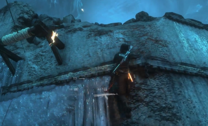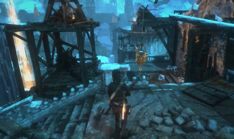 后续步骤通常涉及二次注水与木筏的重新利用。将木筏踢入特定位置后,需通过绳索箭矢将其与水车转轴相连,利用机械力将木筏拉至高台附近。此阶段需快速操作:在木筏移动至中央高台时跳跃攀爬,避免因时间延误而坠落。部分场景还需触发拉环引出隐藏敌人,需优先解决威胁再继续解谜。