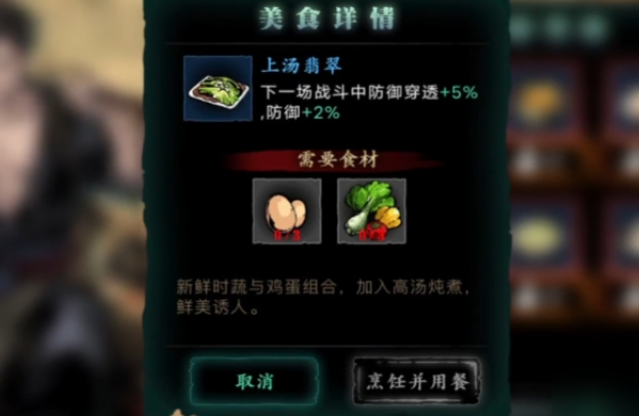 食材获取主要通过关卡探索中的随机事件或商店购买,部分稀有食材需通过特定活动或副本掉落。烹饪等级影响成品品质,提升等级可解锁更多菜谱并提高增益效果。建议优先完成与烹饪相关的支线任务,例如江湖厨神系列,以解锁高级配方和特殊加成。