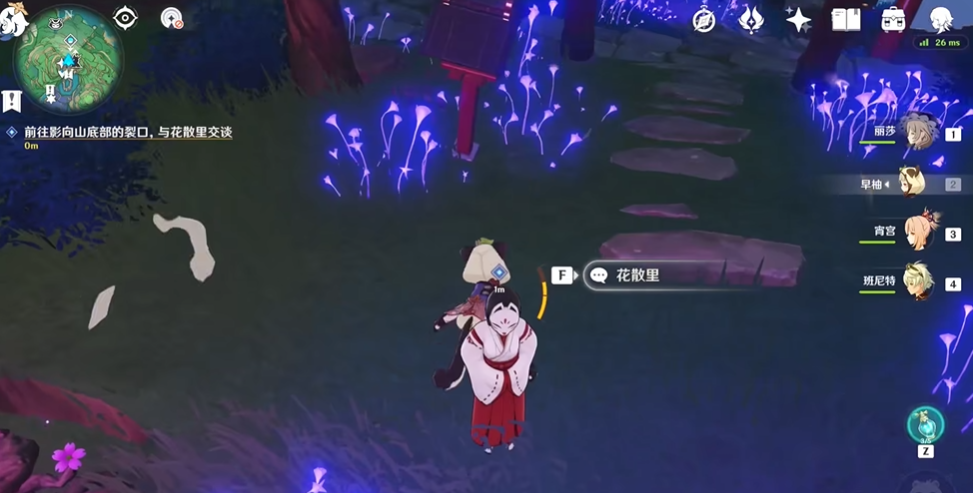 首先咱们要明确影向山底部裂口的具体位置。这个裂口就在影向山下,从鸣神大社往南方向飞就能找到。过去之前记得先传送到绀田村的锚点,往村长屋后的枯井走,在井下祝祷位置和花散里对话触发任务。之后传送到鸣神大社,往南飞就能看到裂口的指引位置。