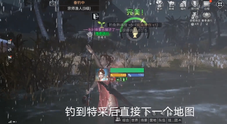 例如莱辛港上方水域属于夏尔镇中转站无法钓鱼,应转向右侧;茅斯沼泽的沼泽区域无效,需前往地图上方水域;红水湖红色水域不可钓鱼,需寻找附近蓝色小湖。莱文市传送点随机,若传送到居民区体育场需通过安全屋传送至工业区钓鱼,完成后可直接从工业区飞机返回。红杉镇需切换阵营至威斯盟方可钓鱼,若无战勋可击杀1-2只威斯盟怪物获取。
