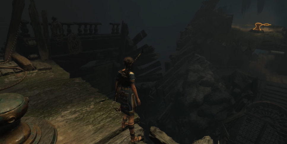 回到地面后,注意吊桥左侧还有个隐藏机关。这次需要和NPC乔纳希配合推动机关,把水流导入绿色容器。不过容器是破损的,所以动作要快!完成这一步后立刻转身,从吊桥下方穿过,会看到关键的绳圈。用弓箭精准射击绳圈,系统会自动生成连接两端的绳索。