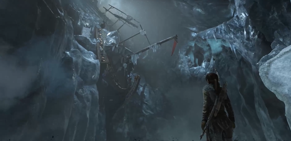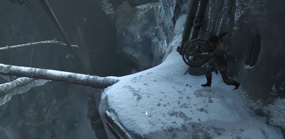 继续往前走,系统会提示附近有古墓挑战,沿着山崖跳过去就能看到一艘冰封的拜占庭战舰,这就是冰船挑战。先跳到船首的木杆上,然后爬到上方的横杆,注意右侧墙壁有可攀爬的地方,但需要先砸开浮冰。扳动机关后,右侧会落下一只金属瓶子,跳上去荡到对面撞碎冰壁。落回甲板后别忘捡文献,接着往上爬,摇动手轮降下金属锅,趁它还没回升时迅速跳上去撞破左侧冰壁。