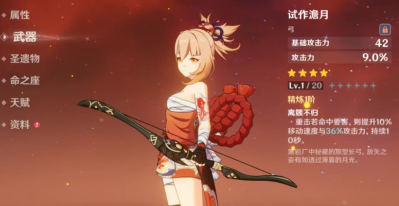 试作澹月的被动特效离簇不归需命中敌人要害触发,因此适合依赖瞄准射击的角色。精炼等级提升可增强攻击力加成效果,但需消耗同名武器。若需大量获取试作澹月用于精炼,需重复锻造并储备足量原胚与矿石。由于原胚获取周期较长,建议优先确保主武器成型后再考虑精炼需求。