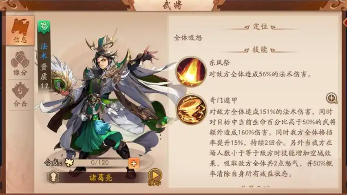 关羽的青龙偃月刀能造成大量伤害,张飞的威慑可以打乱敌方节奏,诸葛亮的控制技能很关键。合击技能要合理搭配,月影蝶舞适合先手沉默,惊雷裂空能清除减益效果。战法方面,鹏云九天配合赵云的高连击特性效果不错,太公六韬召唤的玄武能提供控制。锦囊优先给主力输出配置,暗渡陈仓能叠加护盾增强生存。