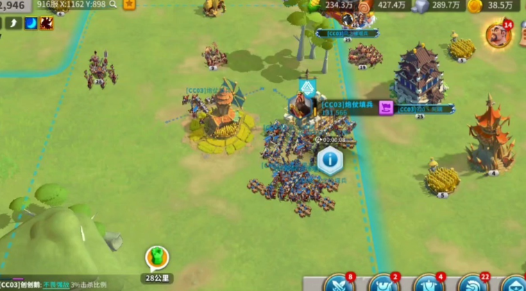 首先侦察目标旗帜的驻守情况,通过邮件查看是否有敌方部队驻防。若发现敌方援军,需优先将其击退以防止修复行为。创建部队时应选择合适的主副统帅组合,优先考虑攻城类统帅以提升破坏效率。部队兵种建议以攻城单位为主,虽然其在战斗中表现一般,但对建筑类目标有额外加成效果。攻击过程中要密切关注旗帜燃烧进度,及时补充部队维持攻击强度。