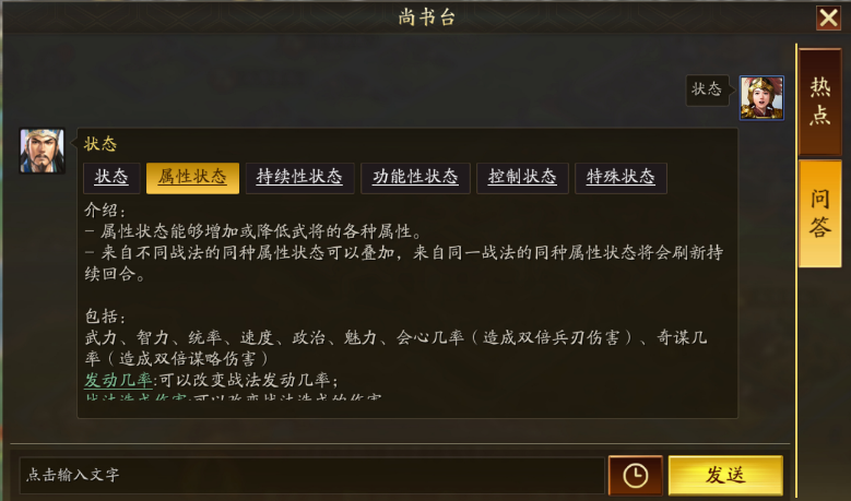 尚书台系统是查询战法的重要辅助工具。在武将界面或战法界面,点击右上角的尚书台按钮可调出帮助系统。该系统对战法类型、发动顺序等机制有详细说明,特别是对新手理解战法优先级有很大帮助。战法的发动顺序为指挥战法最优先,其次是被动战法,再次是主动战法,最后是突击战法,这一规则直接影响战斗结果。
