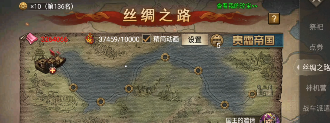 完整获取10珍宝需消耗大量丝绸和锦囊,同时需预留应对动乱事件的金币。建议提前通过功勋奖励、日常活动或联盟援助积累资源,尤其是西域锦囊能直接减少金币消耗。若追求效率,可优先完成能稳定获取碎片的节点,放弃高风险低收益的事件。过程中需注意系统提示的失败概率,避免因连续失败导致资源浪费。