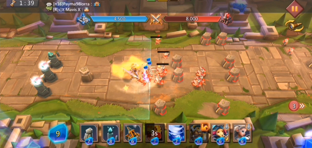 范围伤害技能应在敌人聚集时使用以最大化效果,治疗技能则需在部队遭受重创后及时施放。防御塔的布置讲究层次,石头塔作为前线核心,冰塔用于减速控制,雷电塔负责主力输出,熔岩塔则专门应对后期出现的首领单位。英雄站位需避开敌方集火点,远程输出型英雄建议布置在边角位置。