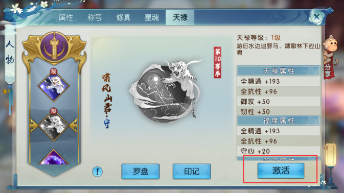 天禄属性分为基础属性和对战属性两类,后者仅在玩家间对抗时生效。化功、御攻、韧性等对战属性需要通过罗盘装备才能激活,而破势、守心等福缘属性必须放入福缘罗盘才可生效。升级天禄需消耗声望道具,可通过天道幻境活动获取赛季声望进行兑换。建议优先将四个核心天禄升至满级,再考虑印记属性优秀的历史天禄培养。