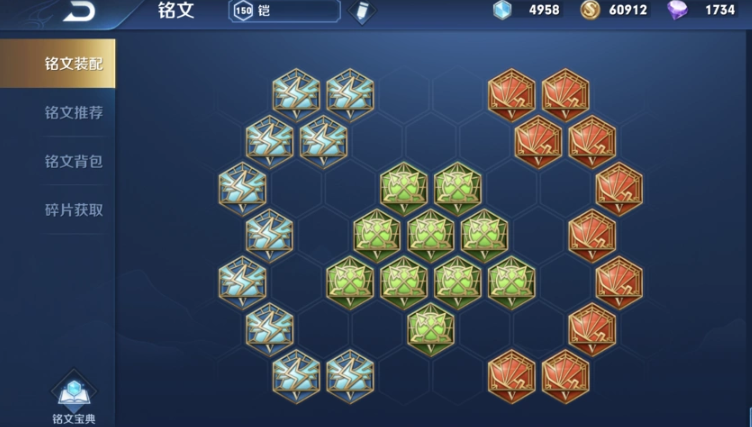 铭文主要围绕暴击率、暴击效果和物理穿透来搭配。红色铭文推荐携带祸源或者无双,祸源直接增加暴击率让前期更稳定,无双则增加暴击效果让后期的暴击伤害更夸张。蓝色铭文可以选择狩猎,增加攻速和移速,让铠的追击和手感更顺畅。绿色铭文则固定选择鹰眼,提供物理攻击和物理穿透,这是物理输出英雄的标配。这样一套铭文能让你在游戏初期就具备一定的暴击能力,配合出装快速成型。