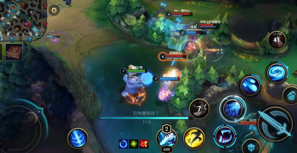 他的被动技能很有意思,攻击敌方英雄、大型野怪或建筑时会给自己和附近的队友加攻速和移速,无论是主动出击gank还是配合队友打架,这个小加速都很有用。核心技能Q是刷野和保命的神技,能对野怪和小兵造成高额真实伤害并回血,这让努努打野基本无伤,而且Q结合惩戒抢龙抢野怪的斩杀线非常高,是控资源的保障。W技能滚雪球则是他的招牌,从野区或河道起步,雪球会越滚越大,撞到敌人能造成伤害和击飞,是发起gank的主要手段。E技能可以连续丢出小雪球减速敌人,最后还能禁锢目标,留人能力一流。大招则是一个范围巨大的减速和爆炸伤害技能,在团战中无论是打伤害还是分割战场都非常厉害。
