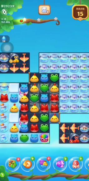 关卡的中后期,步数可能会变得紧张。这时候的重点是高效利用每一步。一方面要继续清理残留的雪块和毛毛球,另一方面要留意棋盘上是否有合成特效的机会,比如直线特效、爆炸特效或者魔力鸟。魔力鸟与特效进行交换,能带来大面积的消除,是应对步数紧张局面、一举完成剩余目标的有效手段。也要注意关卡中可能存其他机制,比如气鼓鱼,击中它们也能引发爆破,帮助炸开冰块或清除障碍。