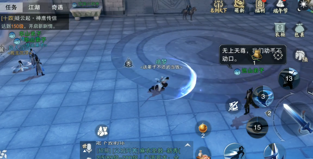 华山职业以剑为武器,属于近战输出角色。这个职业在单攻和群攻方面都有良好表现,还附带一定控制效果,但防御能力一般,容易在战斗中受损。对于喜欢追求高伤害和快速解决的玩家,华山是一个不错的选择,不过它可能需要较多资源投入来发挥最大潜力。华山在破真气方面有优势,能快速削弱敌人防御,从而制造连招机会。华山的操作难度较高,新手玩家需要时间来熟悉技能衔接和战斗节奏。在团队副本中,华山作为主要输出之一,地位稳固,但需要玩家具备一定操作经验。