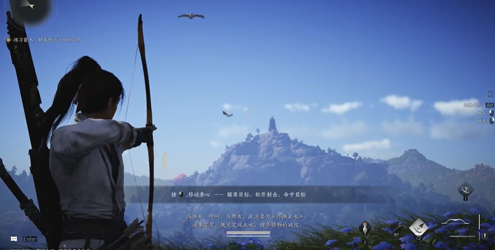 射下飞得最高的鸟是一个考验玩家精准度和技巧的环节,玩家需要前往游戏世界中的北竹林区域启动这个挑战。与NPC蓉蓉对话后,任务正式触发,玩家会收到指示去瞄准并击落高空中的鸟只,这为游戏增添了探索和动作体验。射鸟过程的核心在于使用弓箭武器,玩家应确保已装备好弓箭并进入射击状态。由于鸟飞得较高,直接射击可能效果不佳,因此建议调整瞄准的角度和距离,仔细对准目标后再发射。游戏中的鸟只会动态飞行,玩家需要预判其轨迹,选择最佳时机出手,耐心等待鸟飞到相对稳定的高度或路径上,再果断射击,往往能提高命中率。