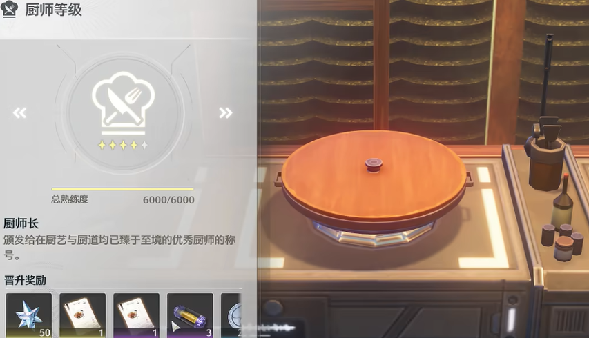 厨师等级系统是烹饪玩法的重要组成部分,总共有五个等级,玩家通过提升等级可以获得各种食谱奖励。这个系统设计为线性进展,每个等级提升都带来新的解锁内容,激励玩家深入参与烹饪活动以优化游戏体验。