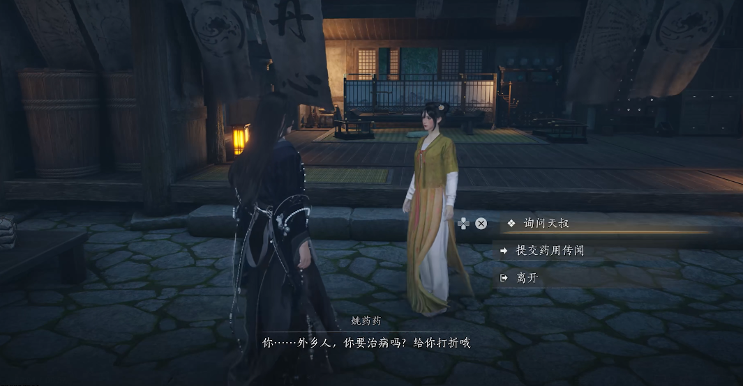 姚药药位于活人医馆内,玩家可以在此找到她以获取医疗相关服务。活人医馆作为游戏中的固定地点,通常在地图上具有明确标识,方便玩家导航前往。这个角色在游戏世界中承担着重要的辅助功能,尤其在与角色状态管理相关的环节中发挥作用。玩家在探索过程中如果遇到角色患病或其他健康问题,姚药药会成为首选的求助对象之一。