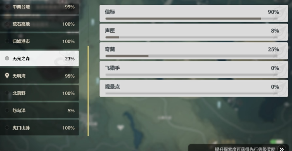 除了上述核心解谜,无光之森区域还分布着其他可探索内容,有助于提升区域探索度。该区域存在名为古今多少故事的收集任务,要求玩家寻找散落的四个旧数据集,全部集齐后可获得日志集等物品。还有独立的生态调查任务,需要玩家前往多个指定地点完成样本采集等操作。进一步探索无光之森,玩家还可能发现与藏宝图相关的宝藏点,这些宝藏通常位于紫月溶传送点下方、废弃岩山顶等特定位置,挖掘后可直接获得宝箱。
