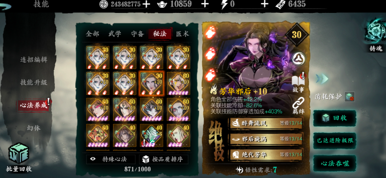 心法对关联技能的效果有直接影响,高品质心法往往能带来更强大的增益,比如提升破甲值或暴击率。心法的升级和突破,关联技能的效果会进一步增强,玩家可以通过消耗特定材料来提升心法等级,从而解锁更高级的绝技效果。心法的摆放和选择也会影响绑定技能的最终表现,因此玩家需要根据心法描述进行合理配置。