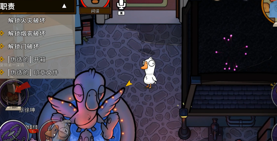间谍是鸭子阵营中的一个职业角色,其根本的胜利条件与所在阵营一致,即需要击杀所有鹅阵营的玩家。这意味着间谍玩家的最终目标并非孤立行动,而是作为鸭子阵营的一员,通过个人行动与团队配合,共同达成使鹅阵营玩家全部出局的局面。明确这一核心目标是规划一切策略的基础,间谍的所有玩法,包括隐藏、欺骗、获取信息与执行击杀,都是服务于这一最终胜利条件。