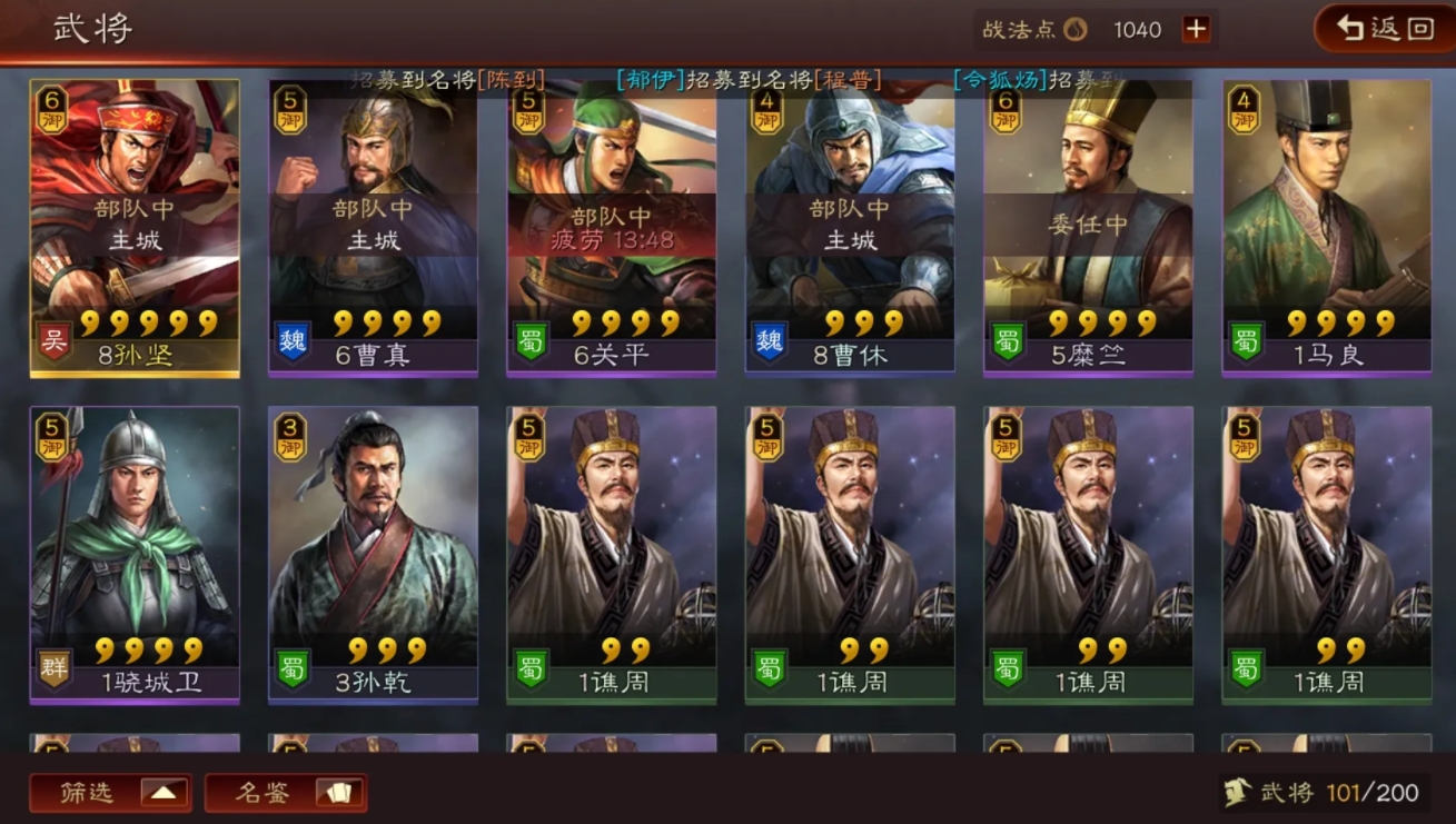 不同阶段的玩法侧重,能让铜钱招四星的收益更贴合实战需求。前期以快速组建可用队伍为目标,侧重良将十连,优先获取郭淮、蒋钦、朱儁这类实用性强的四星武将;中期注重战法体系搭建,多余四星武将可拆解强攻、落凤等优质战法,适配主力队伍配置;后期则以寻访稳定补将为主,补充缺额武将与碎片,逐步完善阵容搭配。全程保持规律招募、合理囤币、优化寻访配置,不用依赖金铢也能持续稳定获得四星武将,支撑全周期发育与实战对抗。