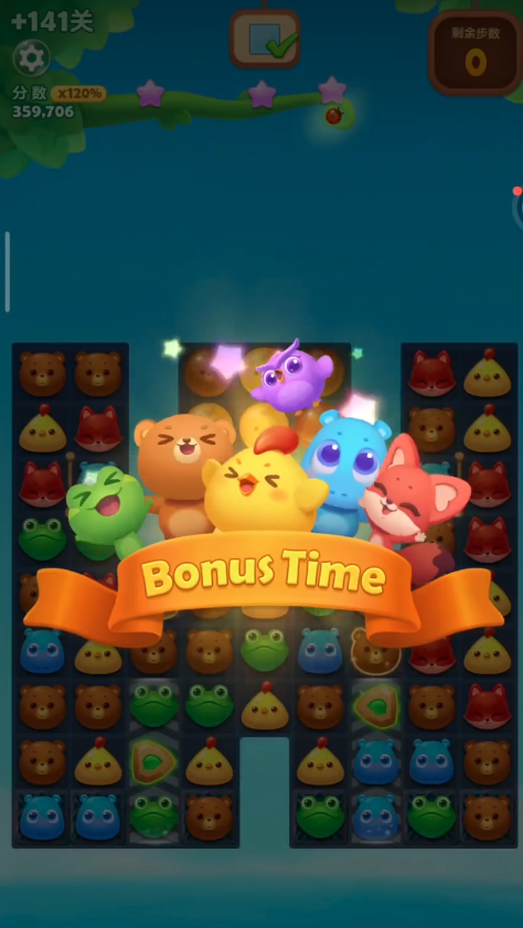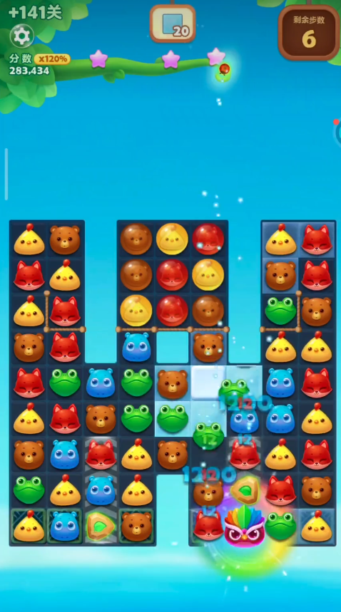 小幽灵作为关卡特殊收集目标,不会主动移动,也无法直接消除,每在其相邻的上下左右格子完成一次普通三消,小幽灵就会带着自身覆盖的动物方块向上蹦跳一行。若小幽灵处于多层障碍或冰层之中,需先清理周边阻碍,否则会完全卡住无法上升。游戏中所有特效都能对小幽灵产生强力推动,直线特效触发时可让幽灵一次性向上多行,爆炸特效能同时影响周边多个幽灵,魔力鸟与其他特效交换后,更能让全屏同色动物转化为特效,批量带动幽灵快速上升。