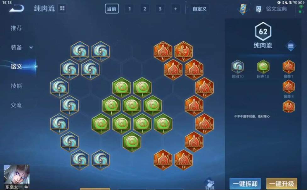 铭文选择10无双、10鹰眼、5夺萃5狩猎的组合,无双提升暴击效果,配合无尽战刃可将暴击效果拉至246%,确保每记强化普攻都能打出高额伤害;鹰眼提供64物理穿透,弥补前期对坦克的伤害不足;5夺萃保证前期刷野续航,无需额外出吸血装备,5狩猎提升移速与攻速,让走A与支援更灵活。实战中要掌握存棍技巧,进场前提前释放二技能存储强化普攻,可多打一棍伤害,搭配二技能分身机制,能瞬间打出多段强化普攻,爆发拉满。团战需等待敌方关键控制技能交完后再入场,借助草丛与视野绕后切入后排,连招采用2A3A1A,二技能突进接普攻,大招控制后再衔接普攻与一技能,全程保持技能与普攻交替释放,最大化输出效率。