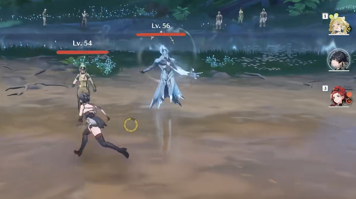 抵达水域广场后会触发巡游骑士的登场动画,随后进入强制战斗环节,巡游骑士为中型精英怪,攻击模式以近战挥砍、冲刺突刺为主,附带范围性剑气攻击,战斗时需保持灵活走位,避开其连续挥砍的连招,抓住攻击后摇间隙输出,可搭配具备闪避反击或远程消耗的声骸,提升战斗效率,当巡游骑士血量降至一定比例时,会进入短暂蓄力状态,此时可集中爆发输出,快速压低血线,击败骑士后战斗结束,触发后续剧情对话。