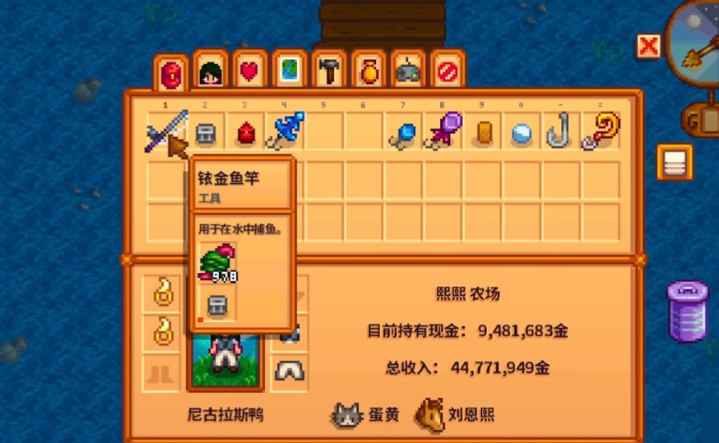 钓鱼装备的正确安装是提升钓鱼效率的关键。铱金鱼竿是唯一能同时安装鱼饵和钓具的高级鱼竿,其他鱼竿如竹竿、玻璃纤维竿等只能安装鱼饵或无法安装任何配件。安装方法很简单,打开背包后左键或右键选中要安装的鱼饵或钓具,将鼠标移动到铱金鱼竿上右键点击即可完成安装。卸下装备时需要先右键移除鱼饵,再右键移除钓具。