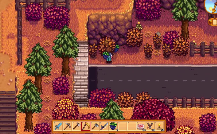 每天起床第一件事就是给作物浇水,升级过的洒水器能省不少力气。趁着作物生长的空档,带上你的小镐子去矿洞挖矿吧,秋天的矿洞会刷新更多有用的矿石。记得多砍些木头,升级畜棚和鸡舍就靠它了。海边和森林里的灌木丛会结黑莓,这可是补充体力的好东西,路过一定要摘。每周五记得去沙漠商人那里转转,说不定能淘到宝贝。