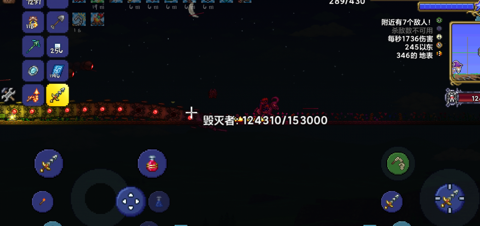 建议搭建多层平台以提供充足移动空间,长度至少覆盖半个屏幕。平台高度需离地面一定距离,避免毁灭者的直接冲撞。配备心形灯笼、篝火和蜂蜜池以提升生命恢复速度。若使用远程武器,提前准备充足弹药,如魔晶弹或灵液弹。药水方面,铁皮、再生、迅捷和耐力药水是基础配置,能显著提升生存能力。