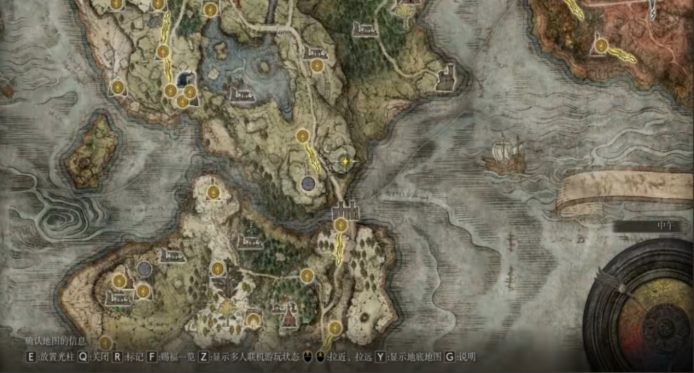 初始地图位于宁姆格福地区,这是玩家从漂流墓地苏醒后进入的第一个开放区域。宁姆格福分为东西两部分,西部是新手主要活动区域,东部则需要通过特定路线到达。初始地图的核心探索点包括艾雷教堂、关卡前方赐福点以及风暴山丘破屋,这些地点为玩家提供了基础装备、NPC互动和主线推进的关键指引。地图碎片通常位于石碑旁,玩家需在迷雾区域寻找发光路标解锁详细地图。