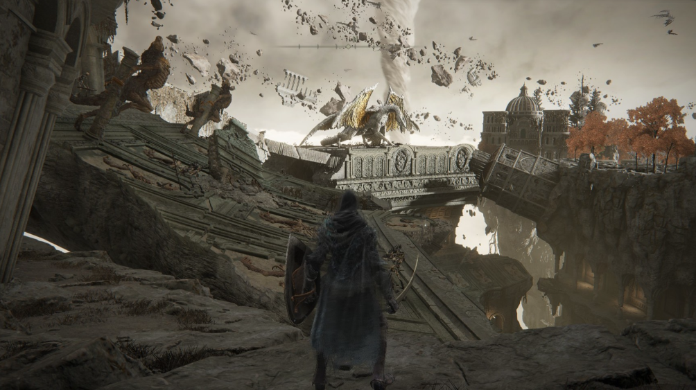主线流程主要围绕收集大卢恩、击败半神、最终成为艾尔登之王展开。游戏包含三条主要结局路线:艾尔登之王、星星时代和癫火之王。主线推进的核心区域包括宁姆格福、利耶尼亚、亚坛高原、王城罗德尔、巨人山顶和天空之城法姆·亚兹拉。
