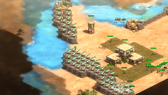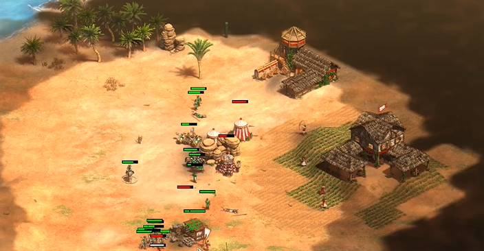 站稳脚跟后,你需要全力发展经济并推进时代。要尽可能快地升级到封建时代,接着马上升级到城堡时代,因为更高的时代能解锁更强的建筑和兵种,比如骑士和骑射手。木材和黄金是本关最核心的资源,你要确保有足够的农民去安全区域种田、砍树和控制金矿点。需要这一关无法升级到帝王时代,也不能建造城堡和箭塔,这就意味着你的全部资源都要精打细算,集中在封建和城堡时代的关键科技上,比如尽快研究骑兵和弓箭手的攻防升级,这些科技在中期战斗中能带来显著的提升。