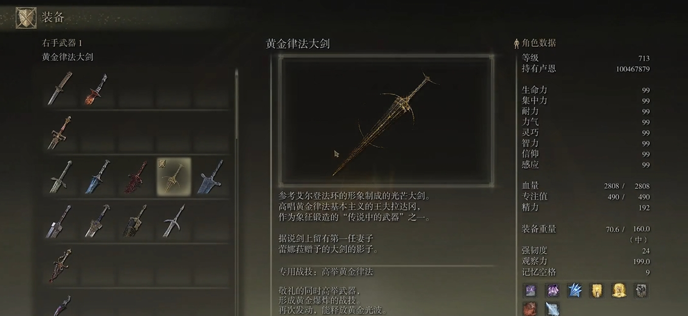 暗月大剑是法师毕业大剑,完成菈妮支线即可获取,需求力气16、灵巧11、智力60,战技月光剑附魔剑身,附带冻伤,蓄力重攻击释放大范围冰霜月光波,仅战技启动耗蓝,后续轻重攻击只耗精力,续航极强,可叠加水母盾20%增伤,高削韧与冻伤异常能快速压制大型BOSS,纯智加点拉满智力后伤害爆炸,适合后期攻坚,搭配葛孚雷肖像、献斗剑护符进一步提升爆发,是近战法师终极选择。